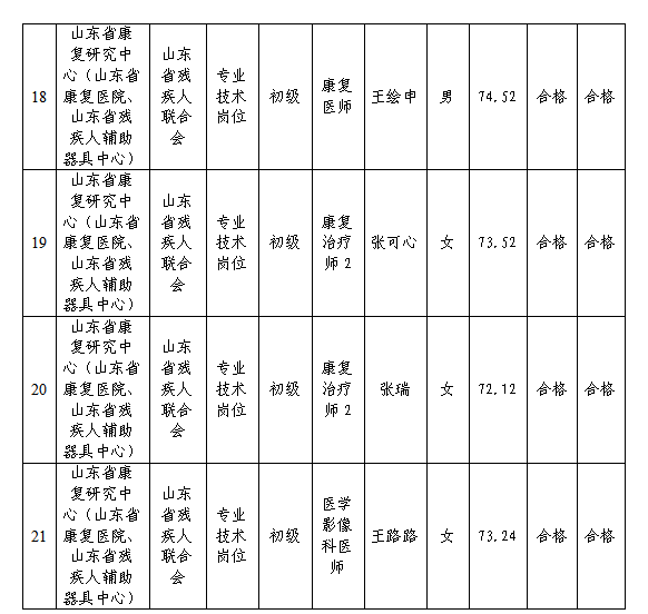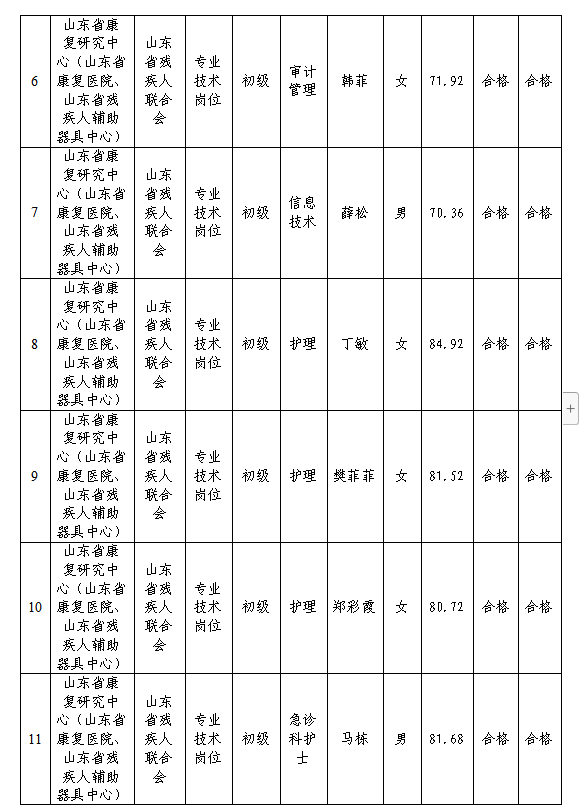 根據省委組織部、省人力資源社會保障廳《關于印發2023年度省屬事業單位公開招聘工作實施方案的通知》(魯人社發〔2022〕23號)等相關規定,按照崗位招聘計劃,省康復研究中心組織完成了2023年公開招聘考試、考察、體檢等工作,現對該單位擬聘用人員進行公示。公示期為7個工作日,自2023年9月26日至2023年10月10日(不含節假日)。公示期間,如對公示人選有異議,請及時向省殘聯反映。